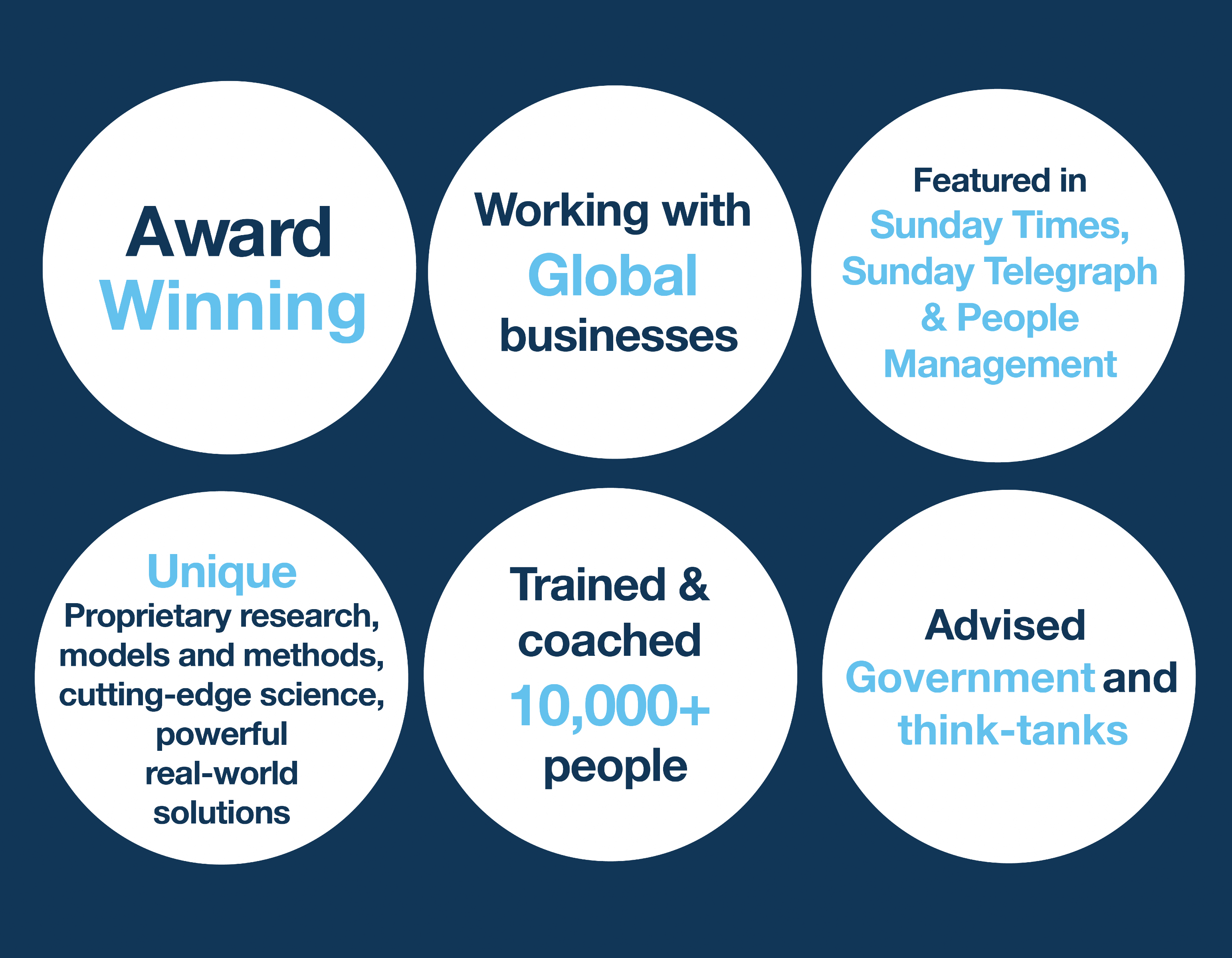 Tougher Minds have advised the Government and think tanks, had their work featured in The Sunday Times, The Sunday Telegraph, People Management and T.E.S, published peer-reviewed papers and have helped tens of thousands of people to be their best.